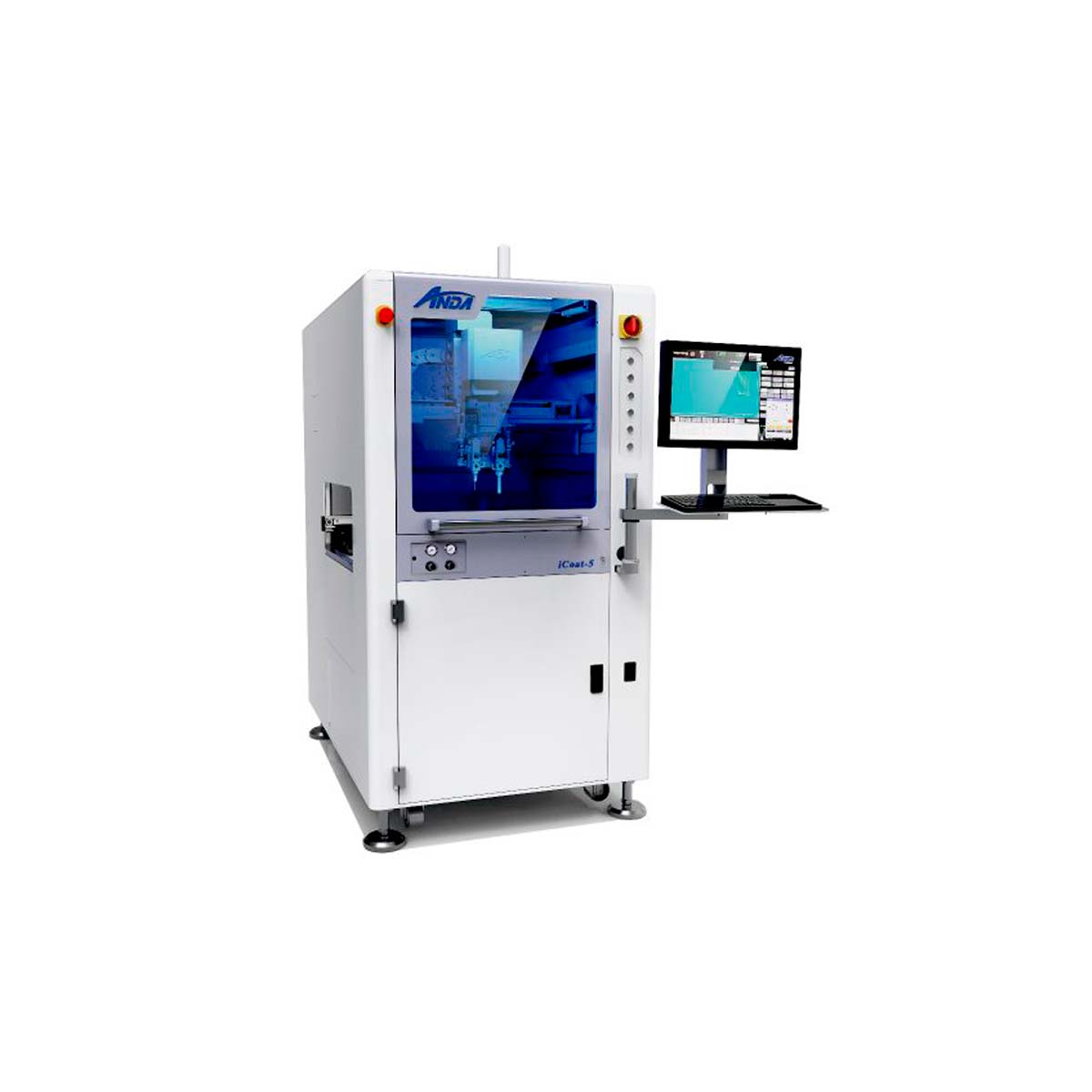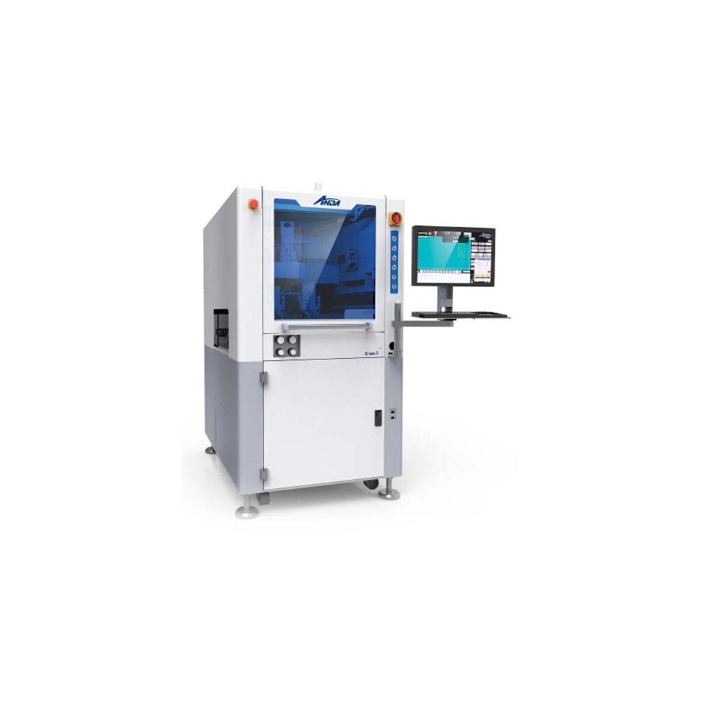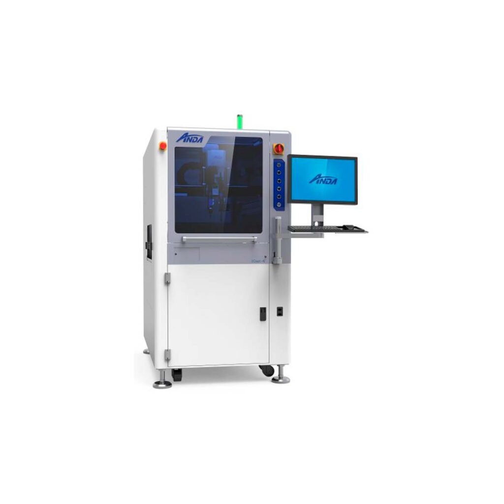 ANDA’s iCoat-5 is a high-speed precision selective conformal coating machine that’s designed to deliver the highest quality in accuracy and precision for automated batch or in-line conformal coating processes. Ideal for automating high volume/throughput or high mix low volume (HMLV) coating processes. Suitable for panelized or palletized printed circuit board assemblies (PCBAs) and large area coating applications.